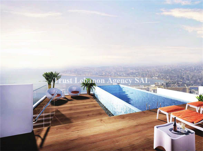 With direct views of suspended gardens and pool